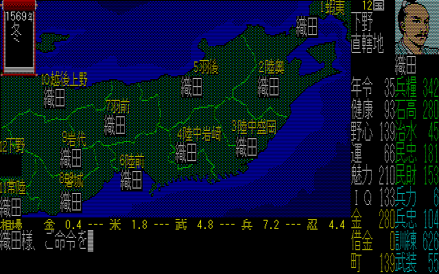 最近の信長の野望の信長さんは、どんどんカッコよくなってるけど、全国版では、純粋におっさんだ。26歳にしては老けてる気がしないでもないな。