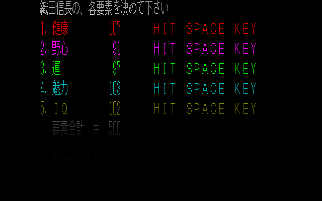 では、ゲームを始めよう「これでよろしいですか? Y/N」の画面で間違えてNを押してします。痛恨のミス。まさかの最初からのスタート。